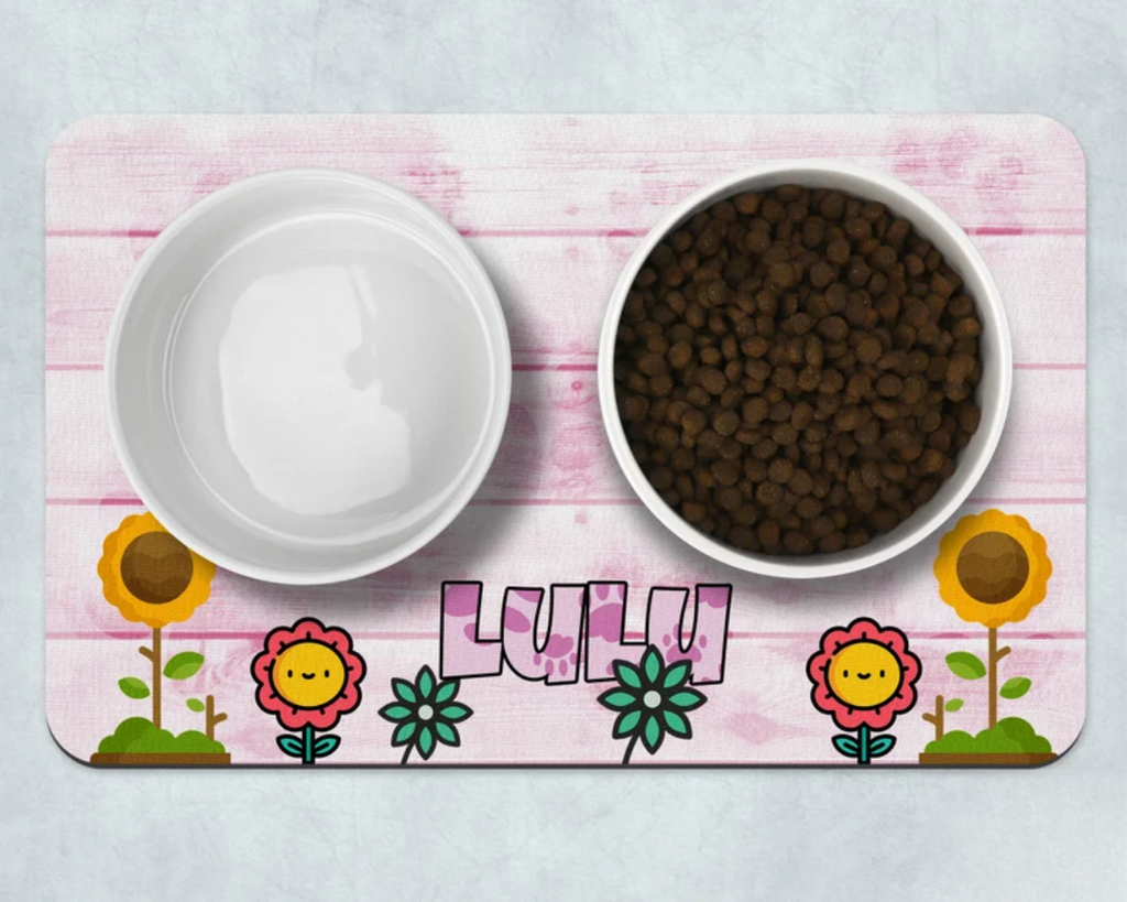 our Pink Garden with Distressed Wood Design Pet Mat – a delightful fusion of nature-inspired aesthetics and rustic charm, thoughtfully crafted to elevate your pet's dining space. This pet mat is not just a practical solution for keeping your floors clean; it's a canvas for personalization, allowing you to create a unique and fun accessory for your furry friend.