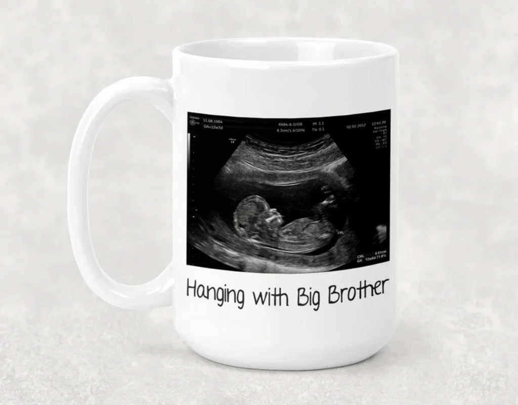 Share the joy of expecting with our special Ultrasound Mug, available in 11 oz or 15 oz sizes. Perfect for dads, moms, grandparents, and a delightful gift for fathers-to-be. It's not just a mug; it's a unique baby reveal idea!